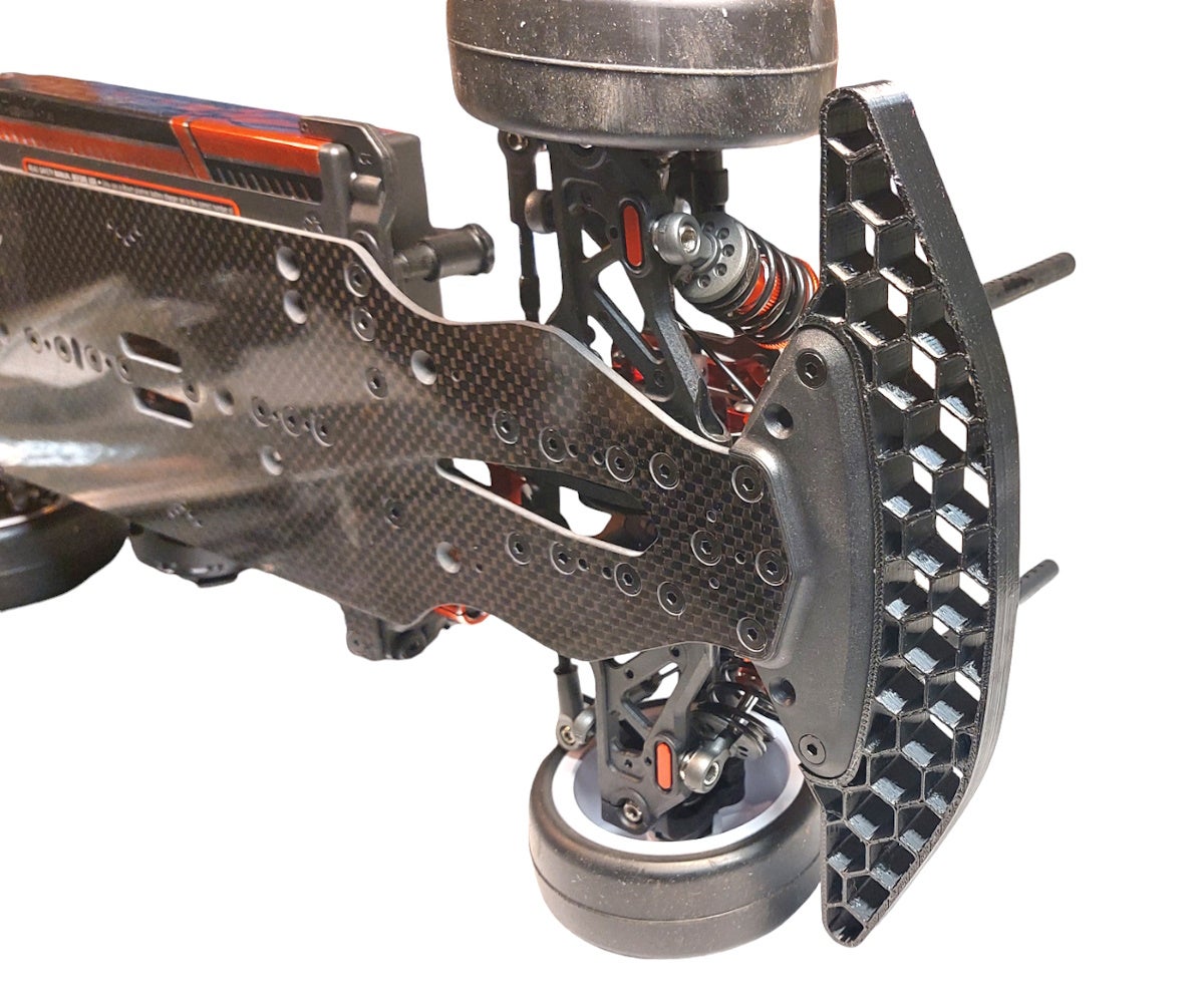 Halko MG-seriens stötfångare är designade och testade med förarna, för förarna. Baserat på feedbacken från teamförarna tror vi starkt på att dessa stötfångare är ett bra val från vanliga hobbyister upp till racerförare på toppnivå. Dessa nya versioner av den populära stötfångaren är designade för att vara lite lättare än tidigare versioner och strukturen är mer enhetlig än tidigare. Grundidén är fortfarande densamma, stötfångaren blir tunnare framåt för att säkerställa bättre kompatibilitet för olika lågnoskroppar och bottenytan höjs en aning, så att köra över trottoarkanter är mer förlåtande.